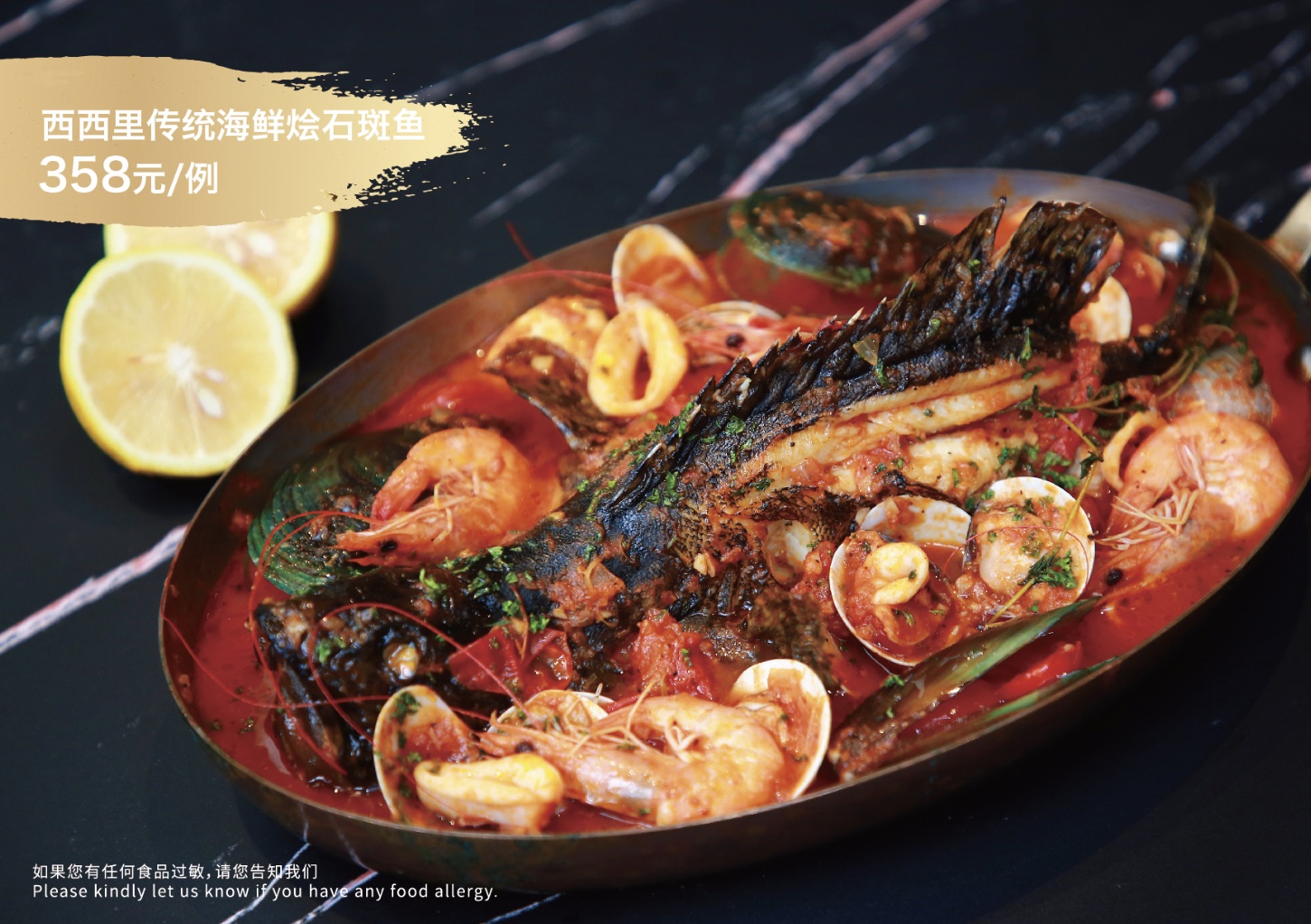 - 西西里传统海鲜烩石斑鱼 358元/例