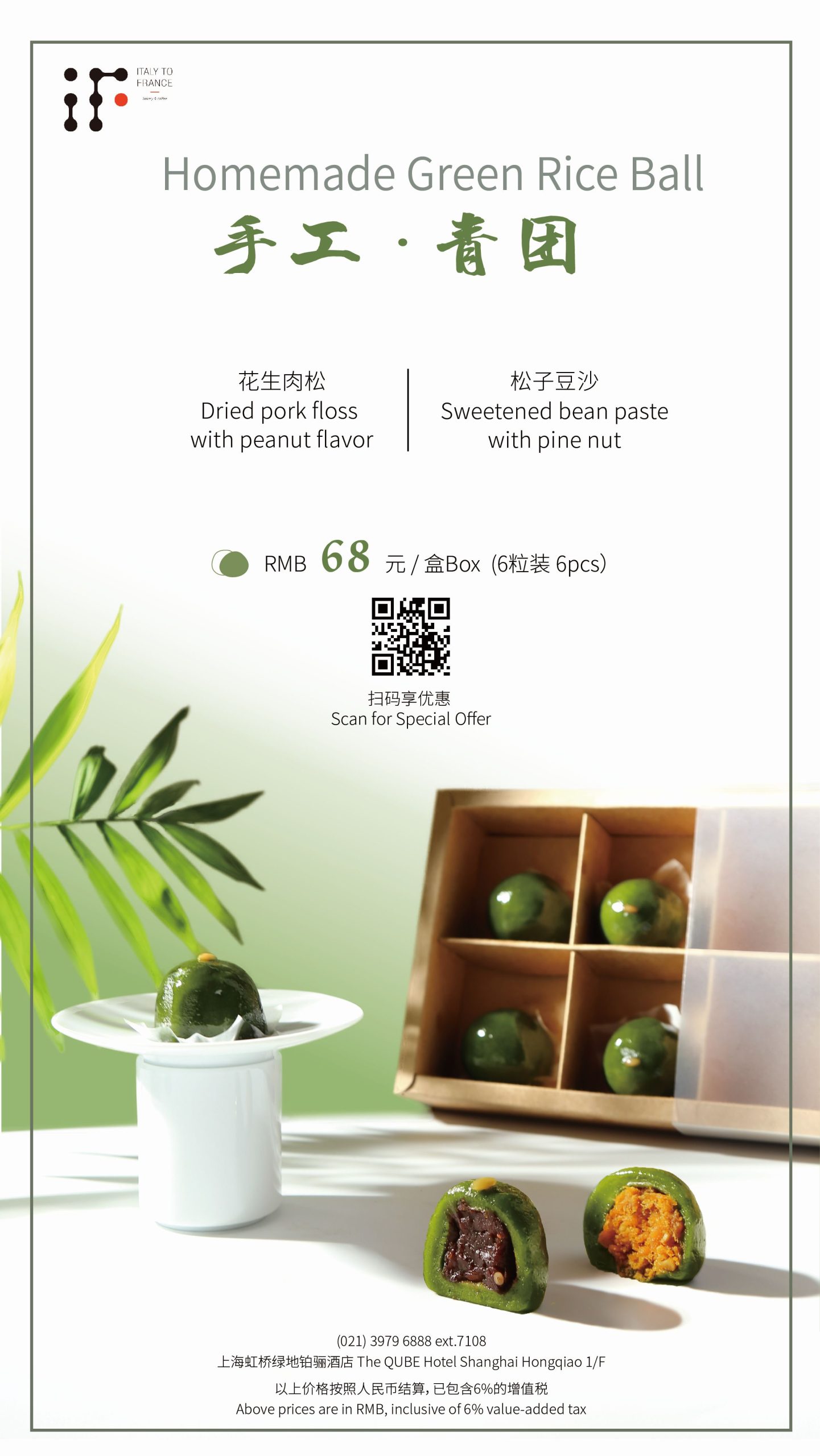 与此同时,春季限定手工青团也是不能错过的美食。青团是对传统工艺的尊重与创新,是对美食文化的传承与演绎。手工制作的外皮翠绿光润、韧劲十足。内馅可以选择香甜细腻的松子豆沙馅,也可以选择花生肉松馅儿,花生香醇的味道与浓郁的肉松相融合,带来一种独特的味觉享受。