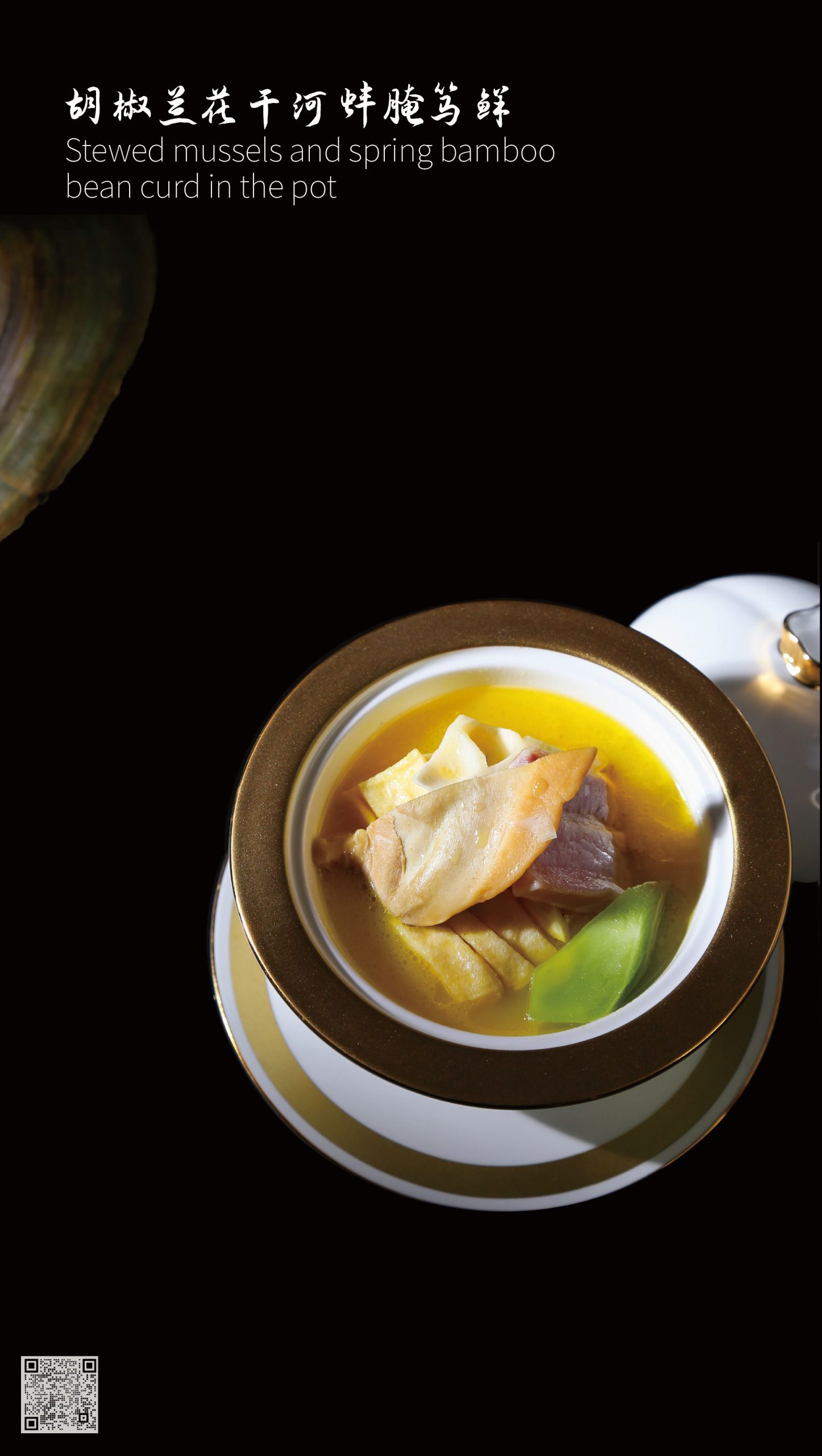 臻萃轩中餐厅行政主厨雷志军匠心独运,以春日的丰盛馈赠,将时令食材点缀于每一道菜肴,以期唤醒沉睡的味蕾,以一份精致的饕餮之宴,迎接这个美好的季节。西班牙火腿浓汤浸白芦笋,汤汁浓郁而鲜美,火腿的咸香与芦笋的清甜相得益彰。胡椒兰花干河蚌腌笃鲜,蚌肉与腌笃鲜的鲜美口感,搭配恰到好处胡椒的微辣,别有一番风味。