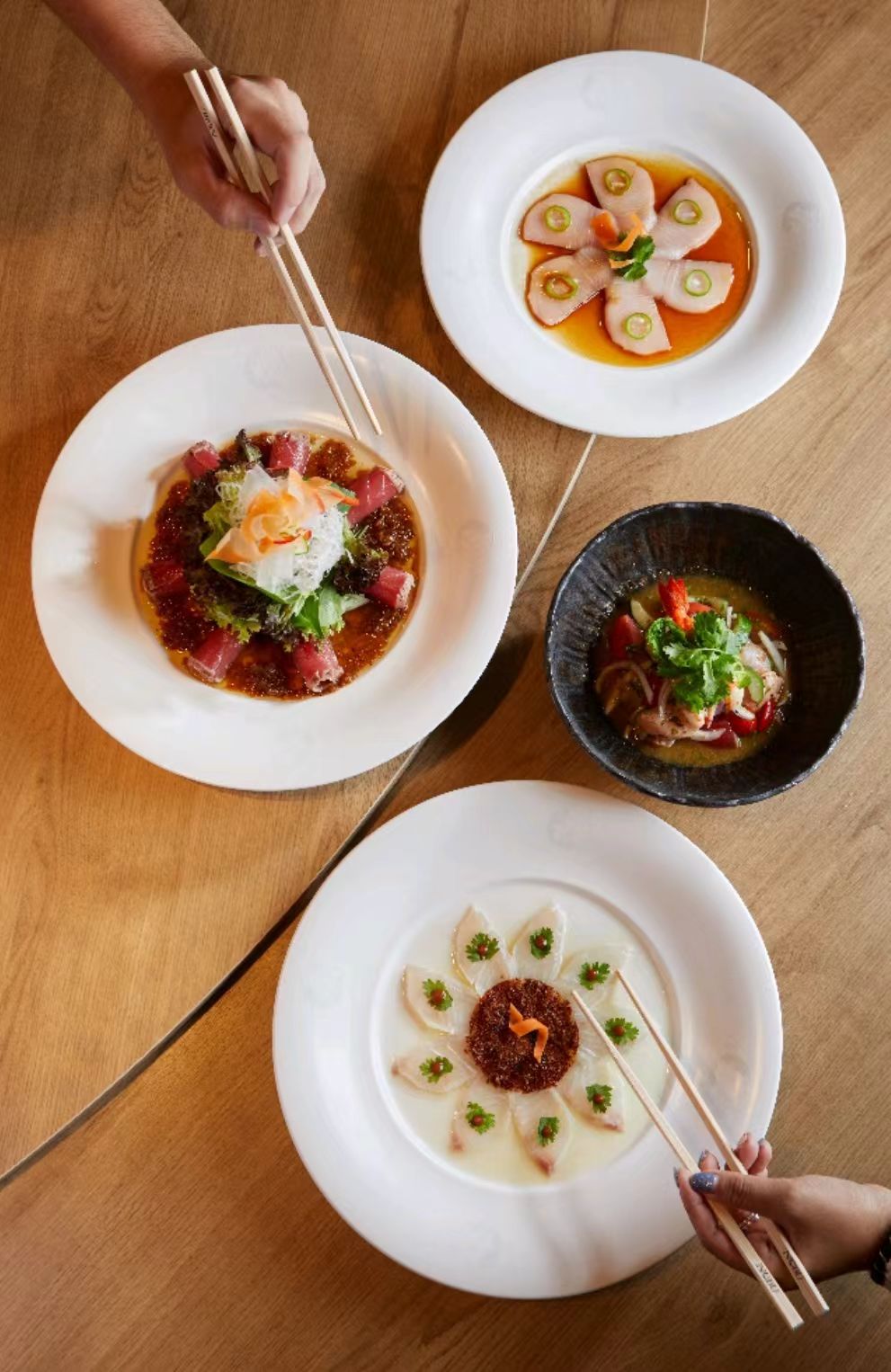 同时餐厅还有典雅的包间(Mori、Machi、Kawa 和 Sancho)为商务宴请和亲朋聚会提供了理想的空间。因此,无论宾客是寻求时尚的环境与家人和同事共进午餐、晚餐,庆祝特殊的日子,还是与朋友一起享受日落鸡尾酒,感受振奋人心的夜晚,曼谷Nobu 都会为每一个场合带来精彩。