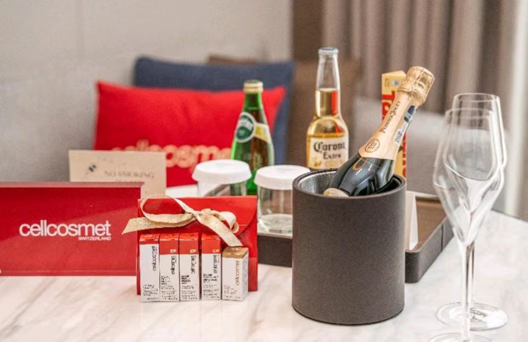 - 赠Cellcosmet瑞妍入住礼(价值436元)及洗护体验装(价值570元)一份。