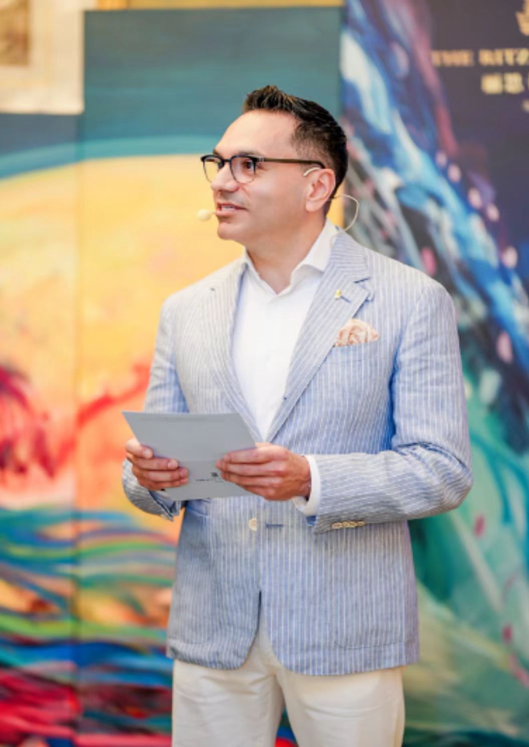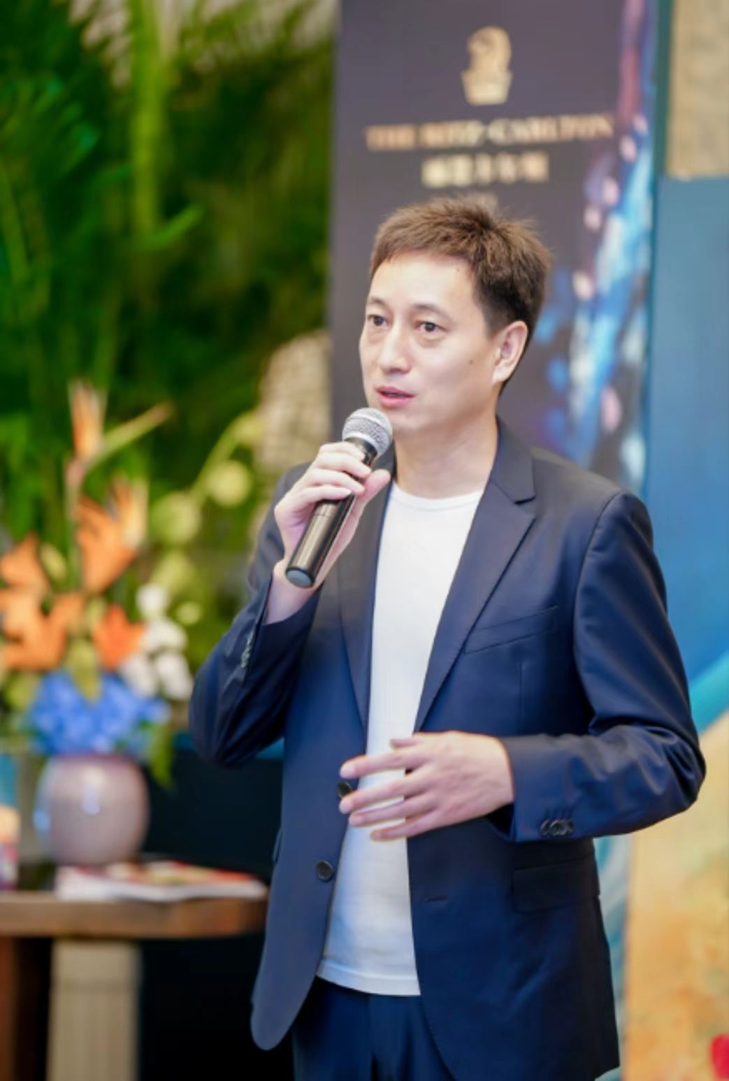 2025年8月26日15:30“涅槃凤影” 艺术展正式开幕。万豪国际区域总经理阿方索Alfonso先生致艺术展开幕词。他表示: “当丽思卡尔顿的百年传奇服务,与艺术家迟首飞先生的东方哲思相遇,便有了 “一场跨越时空的艺术对话,一次味觉与视觉的双重盛宴” 。本次艺术展与艺术家联名月饼礼盒的同步亮相,既是一次东方美学的中秋献礼,更是我们携手艺术家迟首飞先生以 “新生、希望、团圆” 三重意境为宾客呈献的全新奢享体验” 。