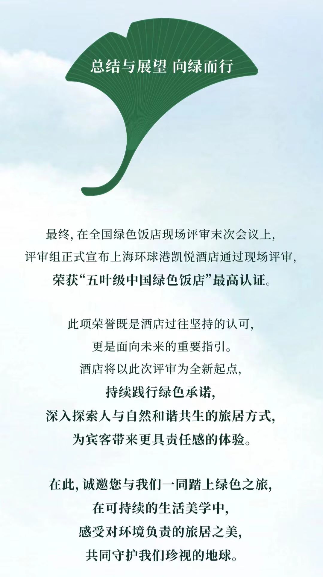 绿色践行!上海环球港凯悦酒店顺利通过“五叶级中国绿色饭店”现场评审