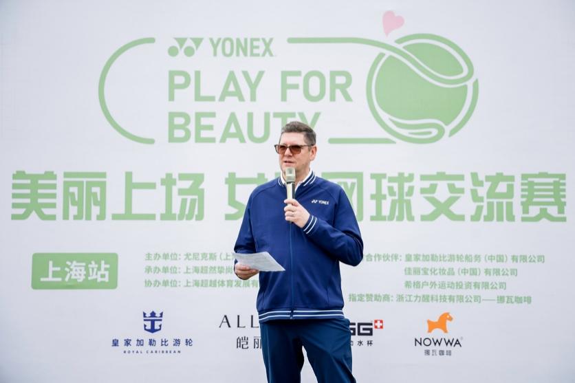皇家加勒比国际游轮大中华区总裁博杰明(Benjamin Bouldin)在“美丽上场2026 YONEX女子网球交流赛”开幕式上致辞